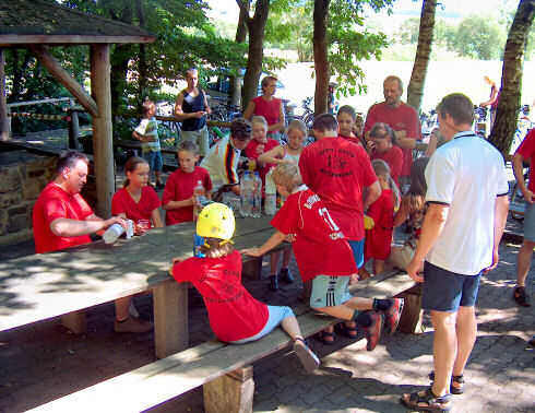 Nach dem ersten Austoben stellte sich dann bei vielen Kindern Durst und auch Hunger ein. Die ausreichenden Getränke fanden reißenden Absatz und ein Betreuerteam hatte bereits den Grill entzündet, so dass die hungrige Meute nicht lange auf das Abendbrot warten musste. Neben dem Grillgut und Brot gab es leckere Salate, die die Eltern dankenswerter Weise zur Verfügung gestellt hatten.
